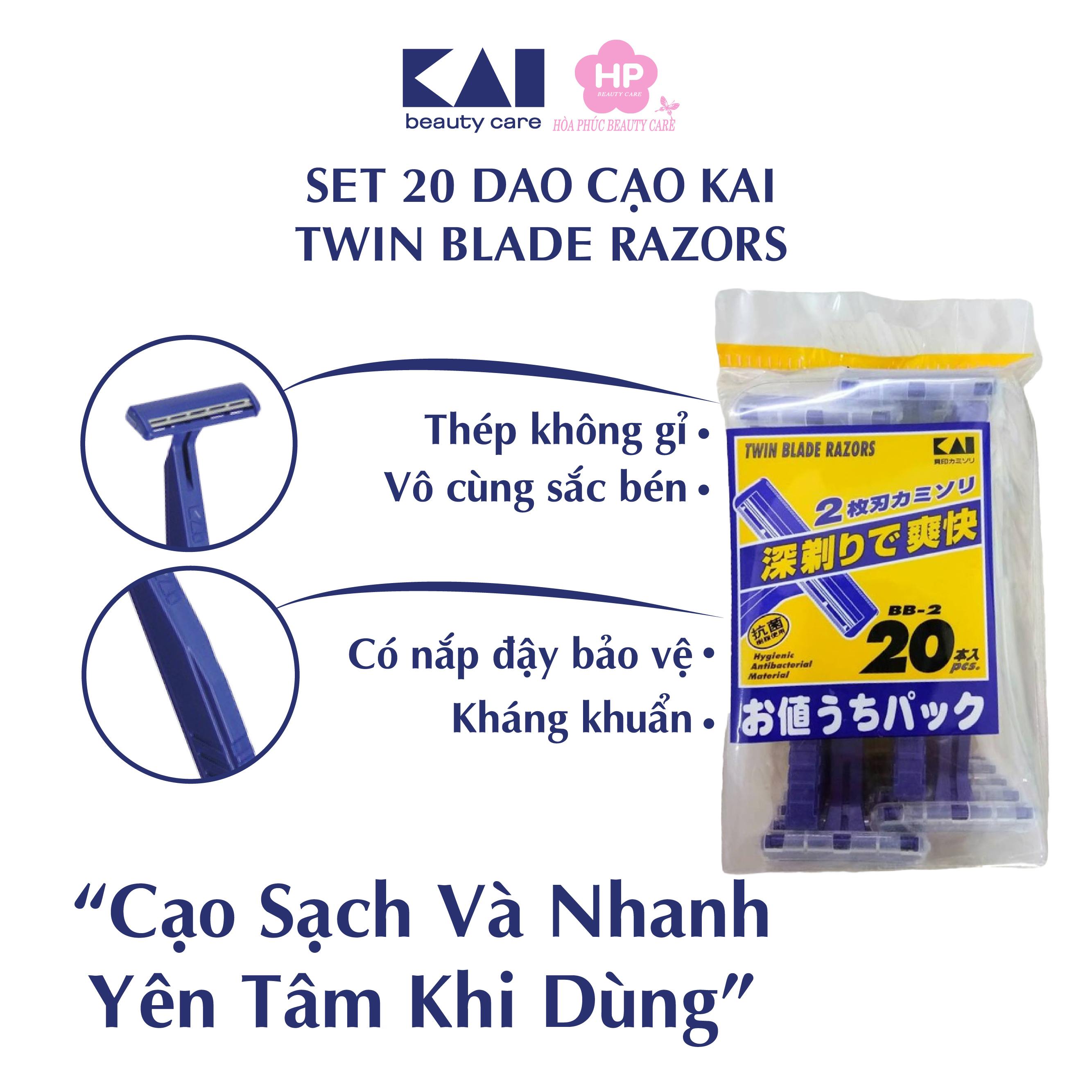 DAO CẠO RÂU 2 LƯỠI KÉP THÂN NHỰA KAI - SET 20 CÂY