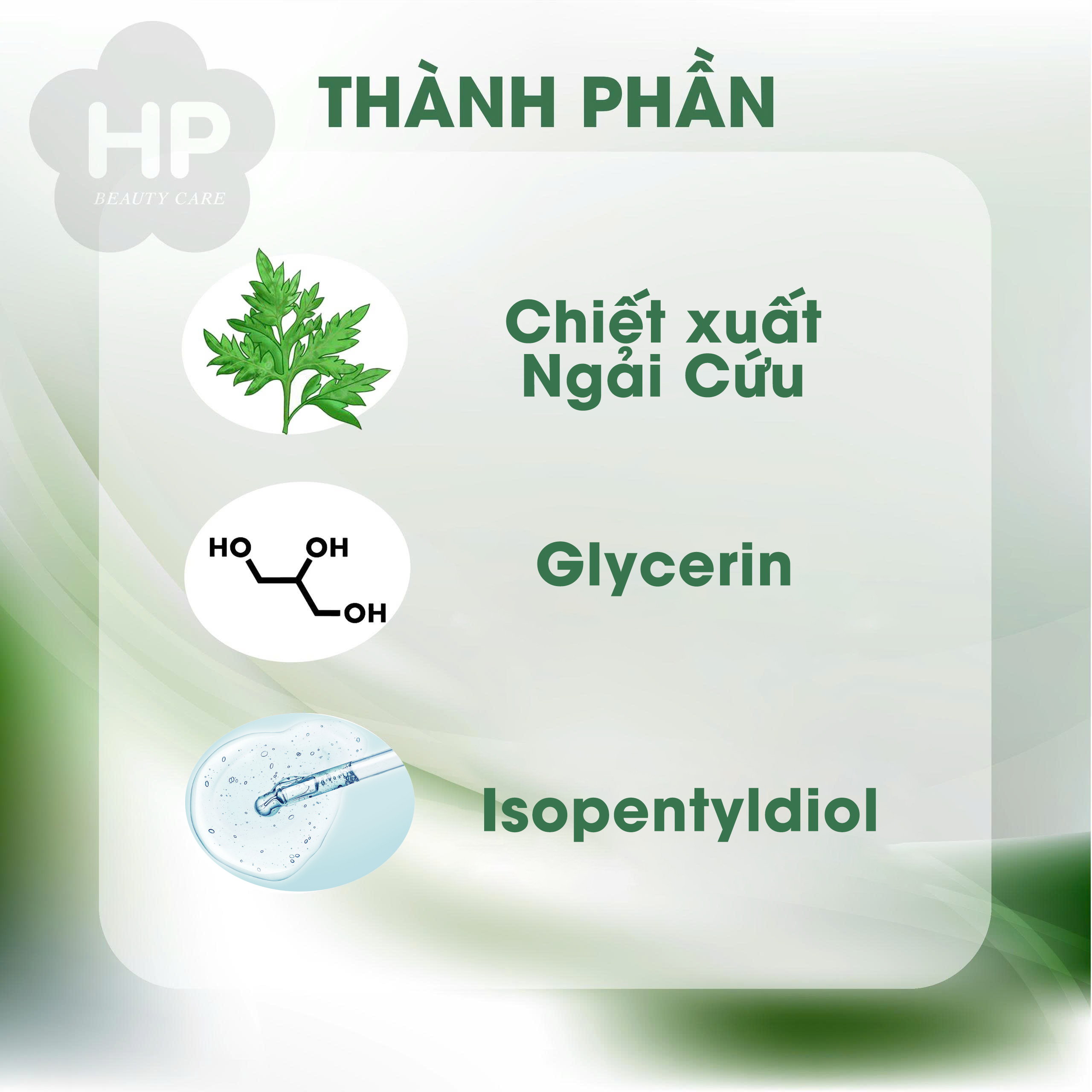 Thành phần: Water, Glycerin, Isopentyldiol, Alcohol, Citrus Aurantium Dulcis (Orange) Flower Water, Methylparaben, Butylene Glycol, Ethylparaben, Artemisia Princeps Leaf Extract.