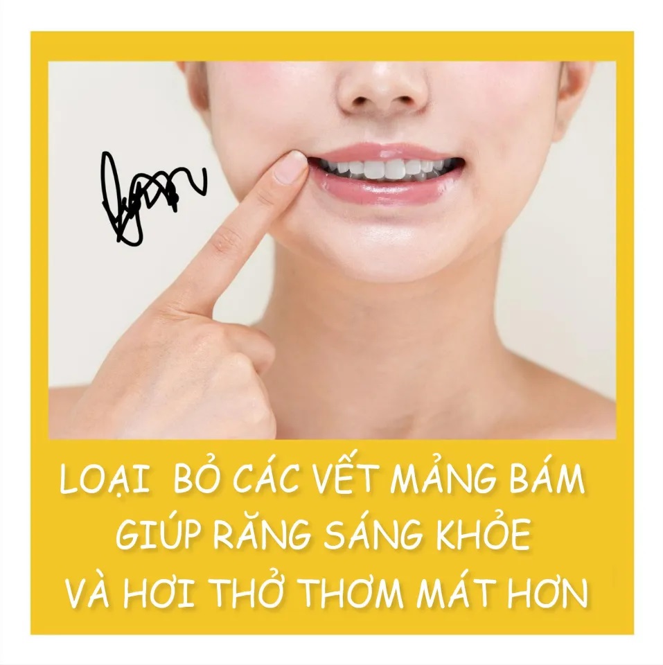 Nước súc miệng được chiết xuất từ Bạc Hà, Mật Ong, Lá Trà Xanh,... giúp làm sạch mảng bám cứng đầu do trà, cà phê, thức ăn có màu... ngăn ngừa tình trạng viêm nướu.