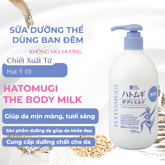 SỮA DƯỠNG THỂ CẤP ẨM SÁNG DA DÙNG BAN ĐÊM HATOMUGI - KHÔNG MÙI HƯƠNG